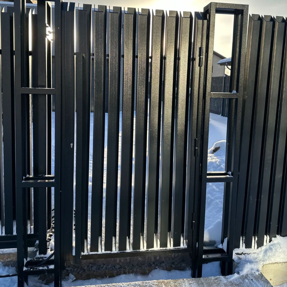 Интегрируется в забор таким образом, что почти незаметна со стороны — визуально сливается с секцией ограждения. Идеальна для тех, кто ценит минимализм и приватность. Открывается как обычная калитка, но остаётся «невидимой» для посторонних глаз.