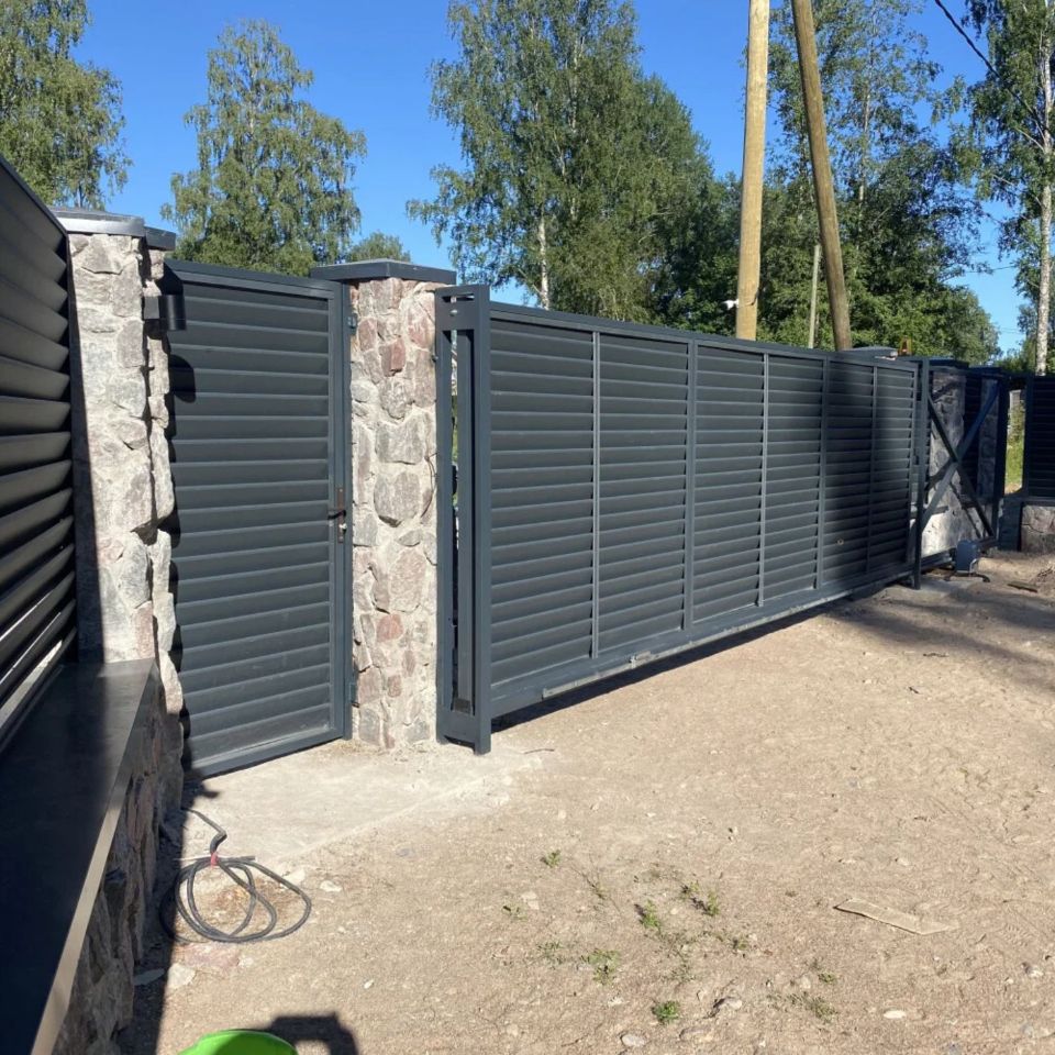 Практичные, надёжные и современные. Откатные ворота идеально подходят для участков с ограниченным пространством — при открывании полотно сдвигается вдоль забора, не занимая места на проезде. Конструкция выдерживает высокие нагрузки и может быть оснащена автоматикой для удобства управления. Отличный выбор для частных домов, производственных и коммерческих объектов.